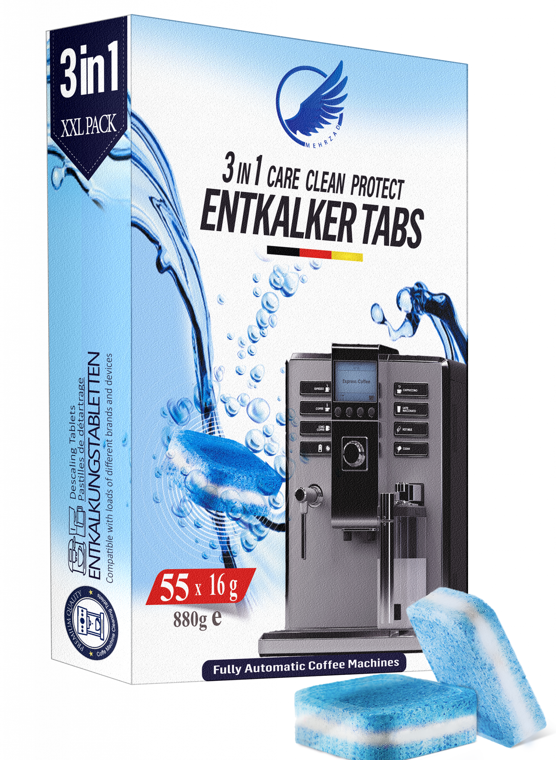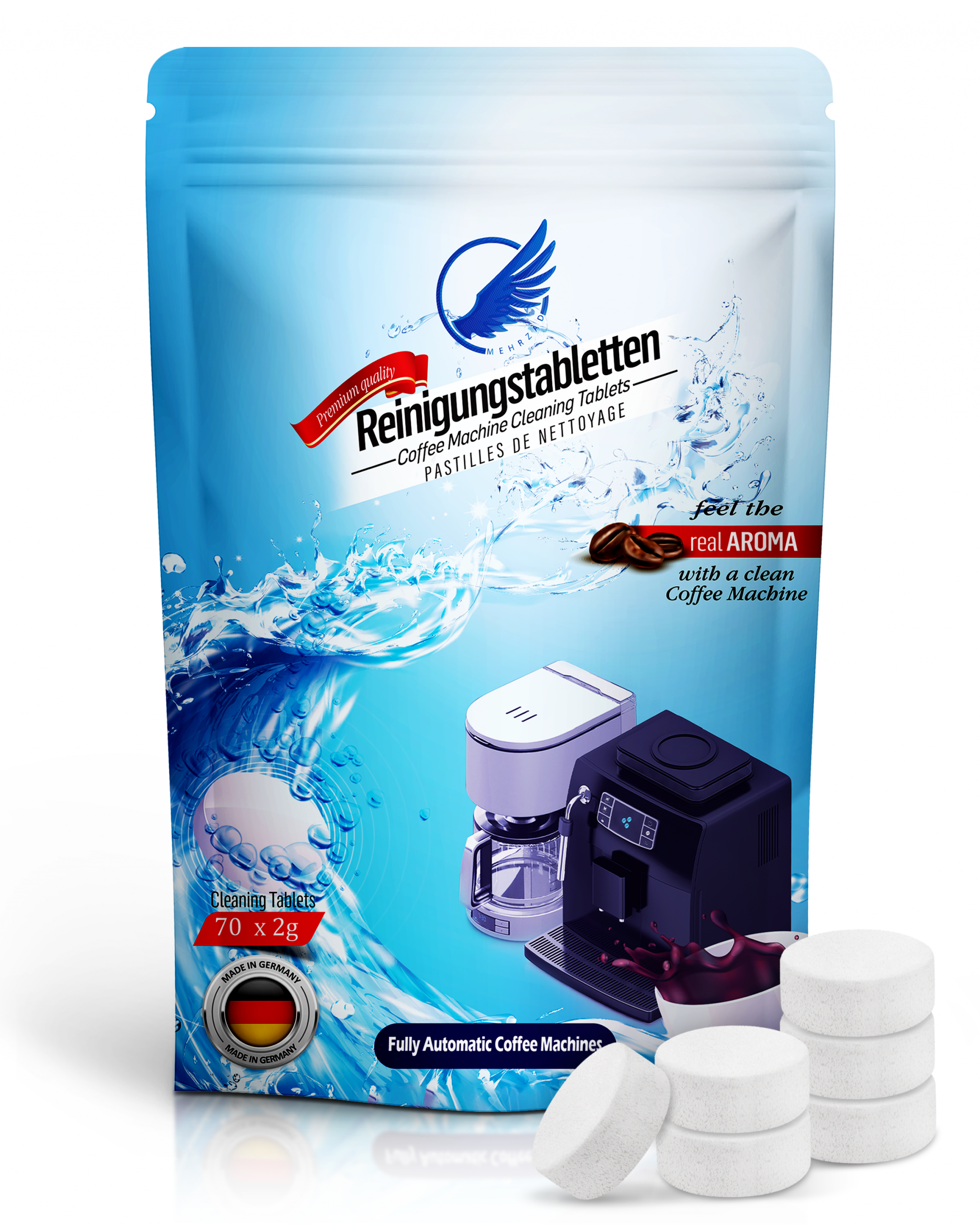 Mit den Mehrzad Premium-Entkalkungs- und Reinigungstabletten sichern Sie sich nicht nur die optimale Pflege Ihres Kaffeevollautomaten, sondern auch einen dauerhaft unverfälschten Kaffeegenuss – Tasse für Tasse.