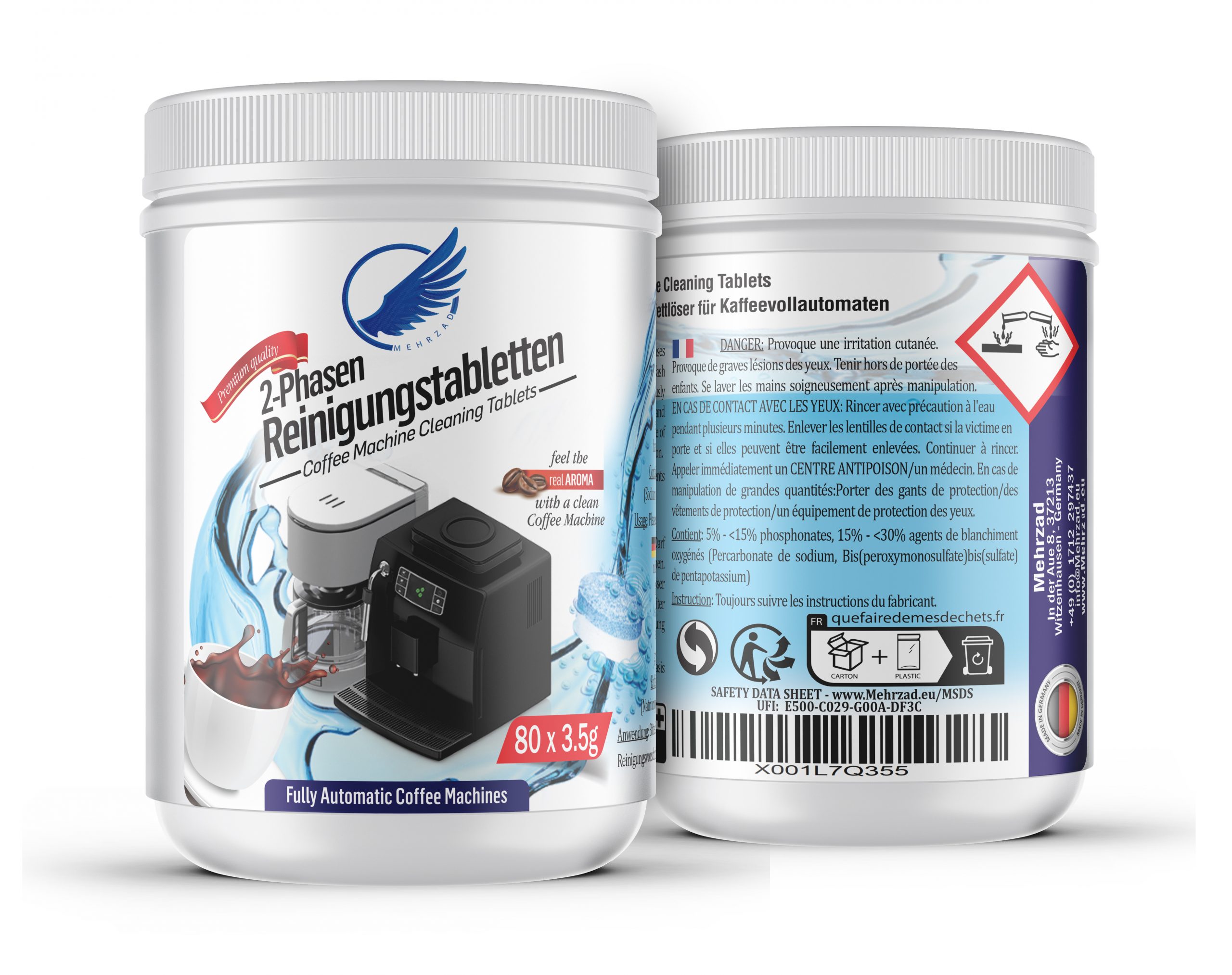 Mit den Mehrzad Premium-Entkalkungs- und Reinigungstabletten bieten wir Ihnen eine zuverlässige Lösung zur professionellen Pflege Ihrer Maschine. Unsere Produkte wurden speziell entwickelt, um Kaffeevollautomaten gründlich und schonend zu reinigen sowie von Kalk und Ablagerungen zu befreien – für eine gleichbleibend hohe Kaffeequalität.